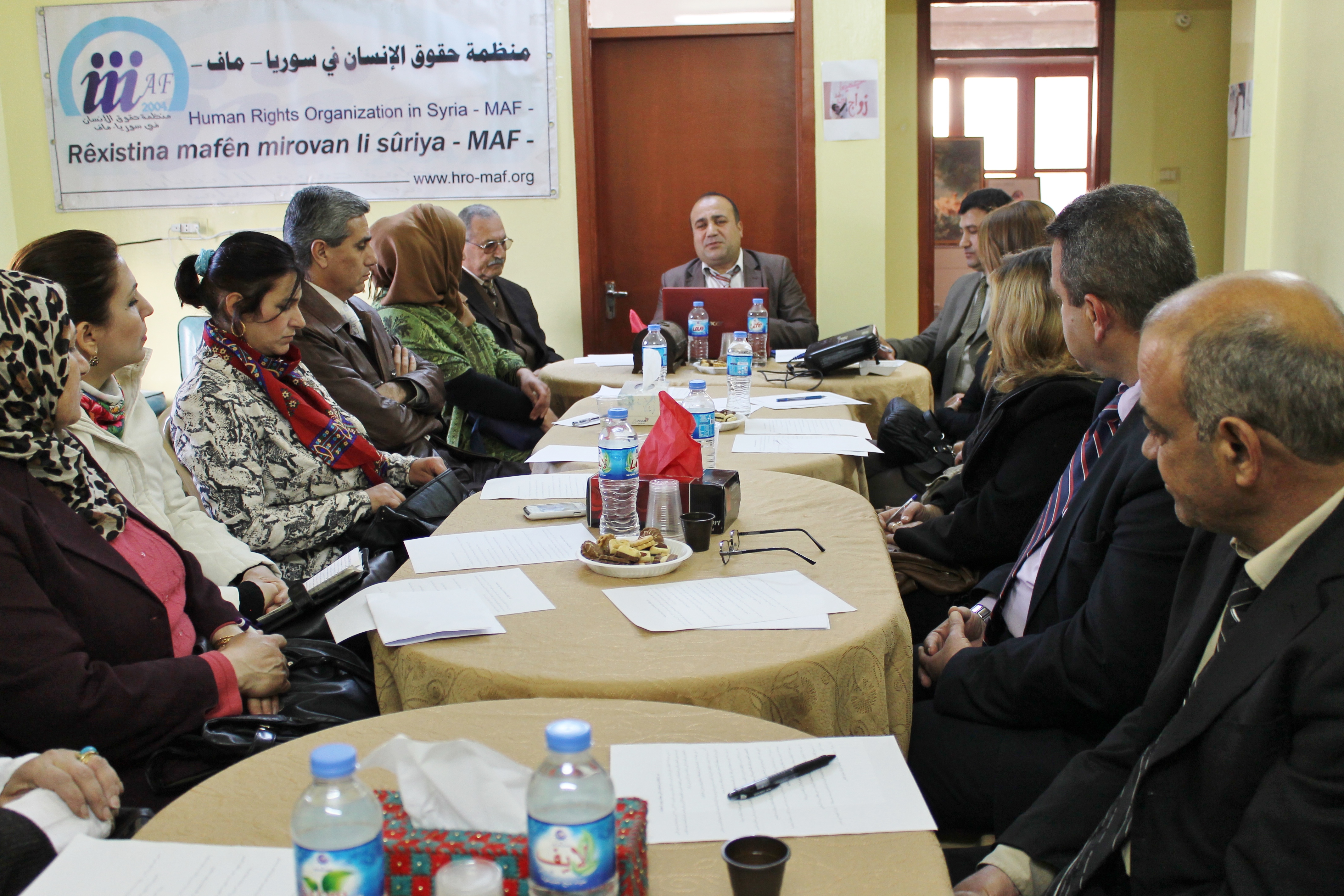 بحضور عدد من المحامين والحقوقيين والمهتمين وممثلين عن هيئات المجتمع المدني, أقامت منظمة حقوق الإنسان في سوريا- ماف اليوم 30/3/2015 حلقة نقاش عن التطور التاريخي للقضاء الجنائي الدولي, وصولا الى المحكمة الجنائية الدولية, التي كانت ثمرة جهد عالمي لأكثر من قرن تكلل بالنجاح باتفاقية دولية سميت بنظام روما الأساسي, الذي بموجبه رأت هذه المحكمة النور.